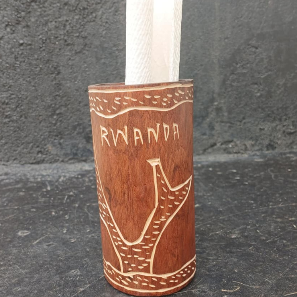 Handcrafted in Rwanda from premium Jacaranda wood, this 13cm x 7cm holder is both functional and stylish. It can be used as a pen holder, serviette stand, receipt organizer, or even as a decorative flower holder. A versatile piece that adds natural elegance to any space.